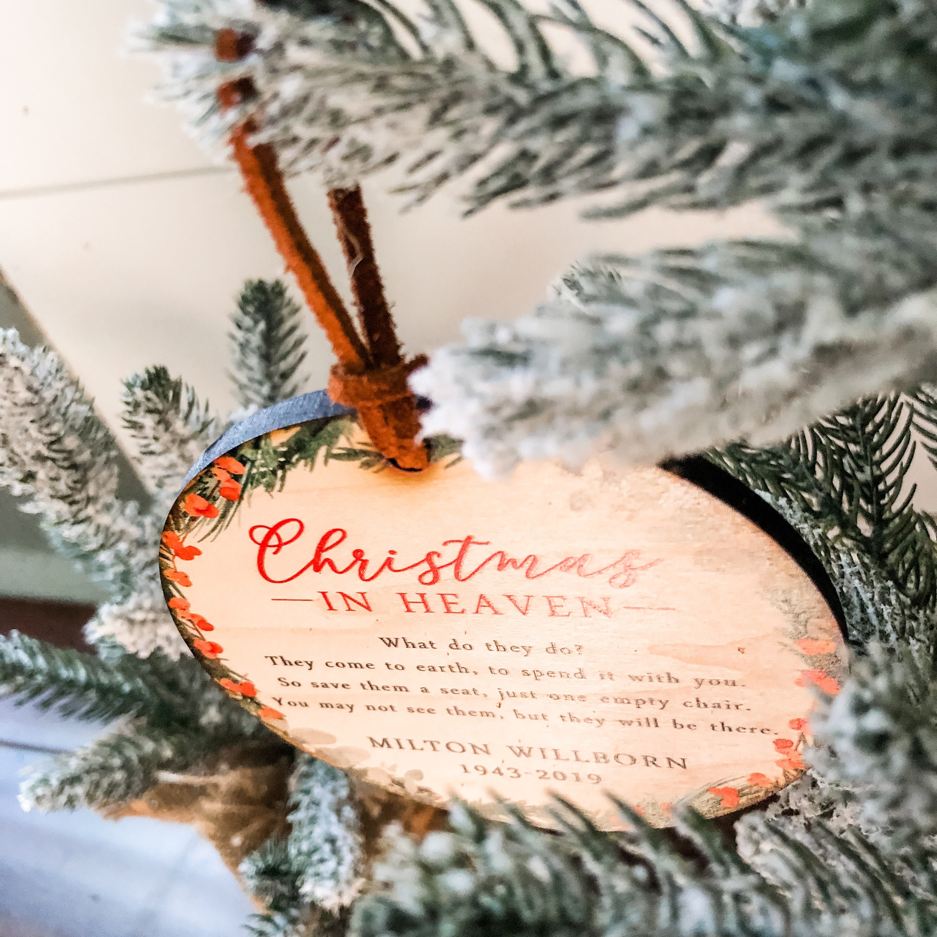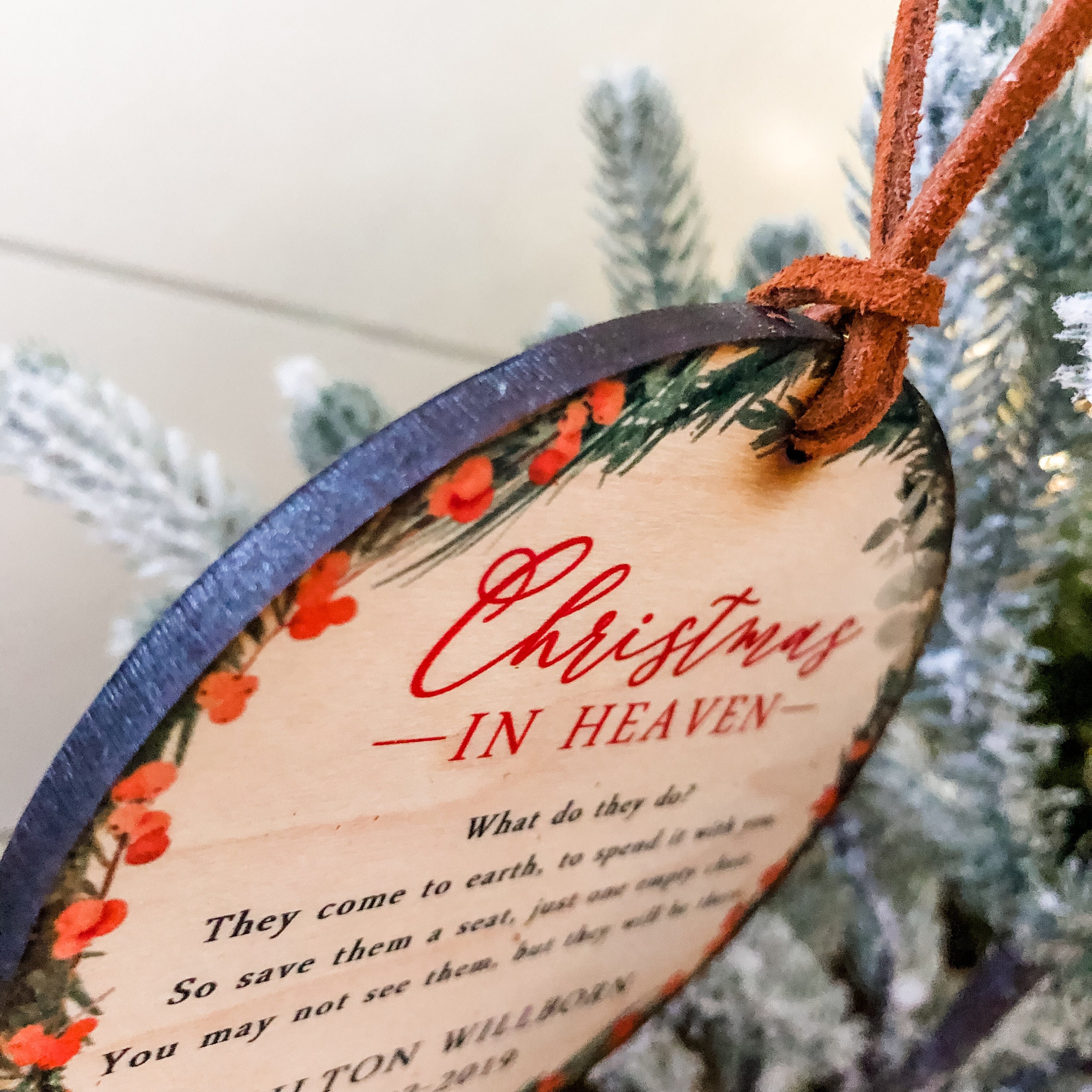 Beautifully printed on 1/4" veneer wood, these customized Christmas in Heaven ornaments are a great way to remember a loved one and something that can be cherished every year.