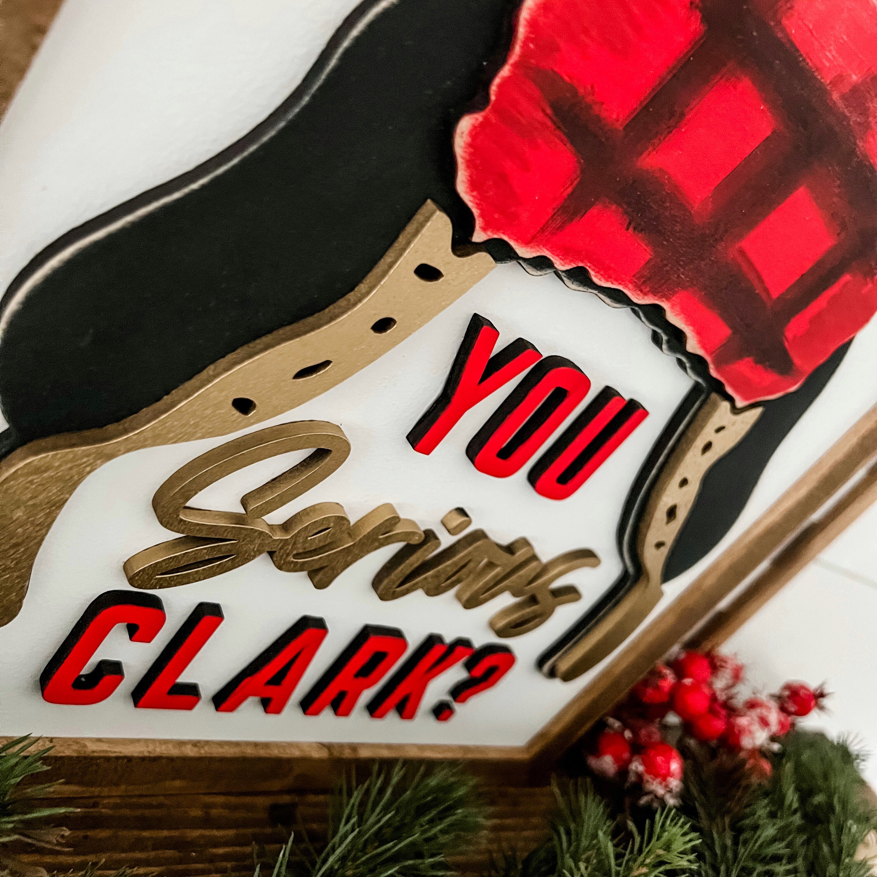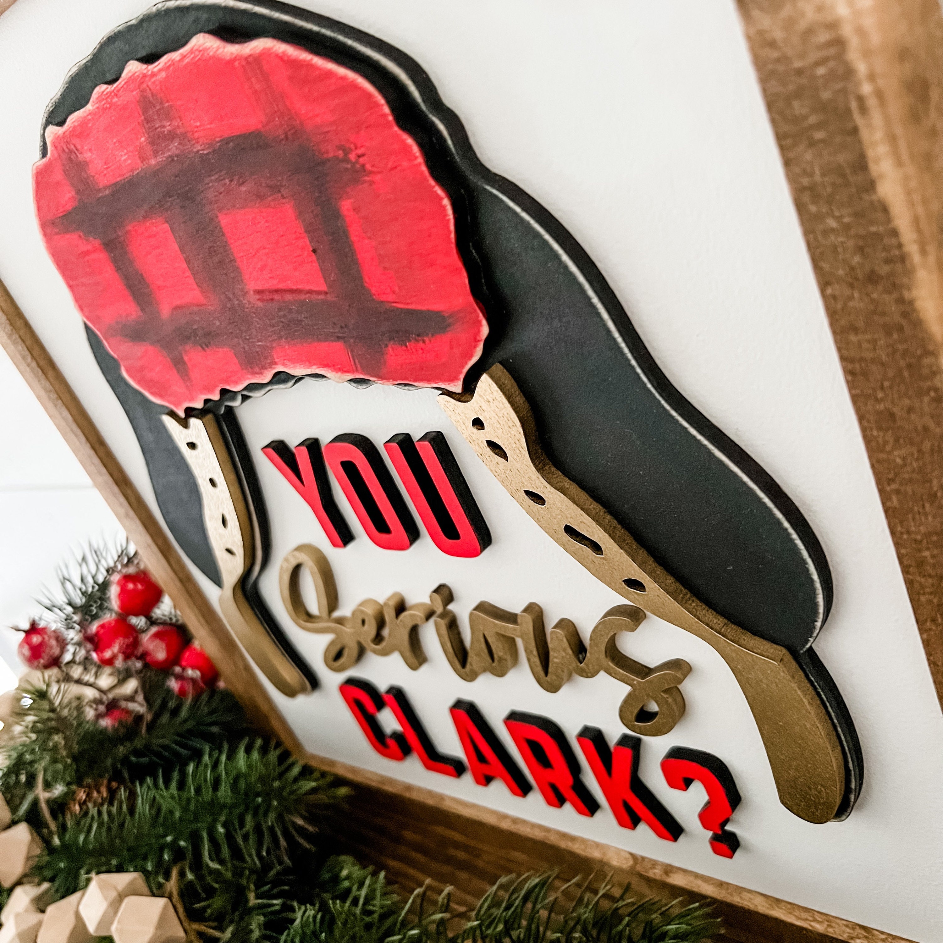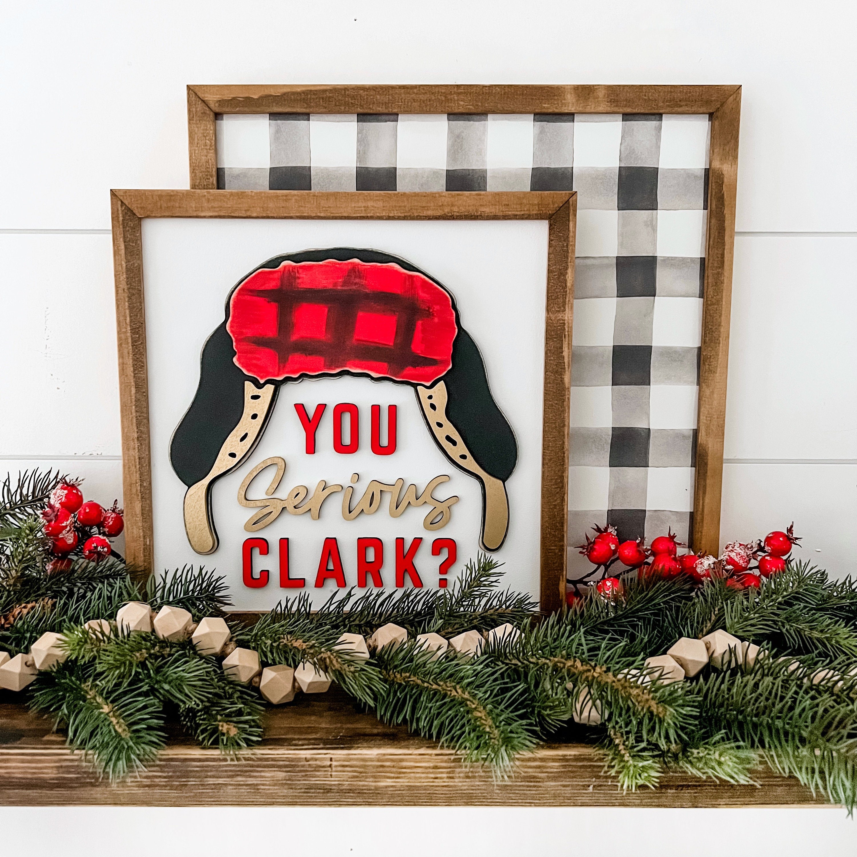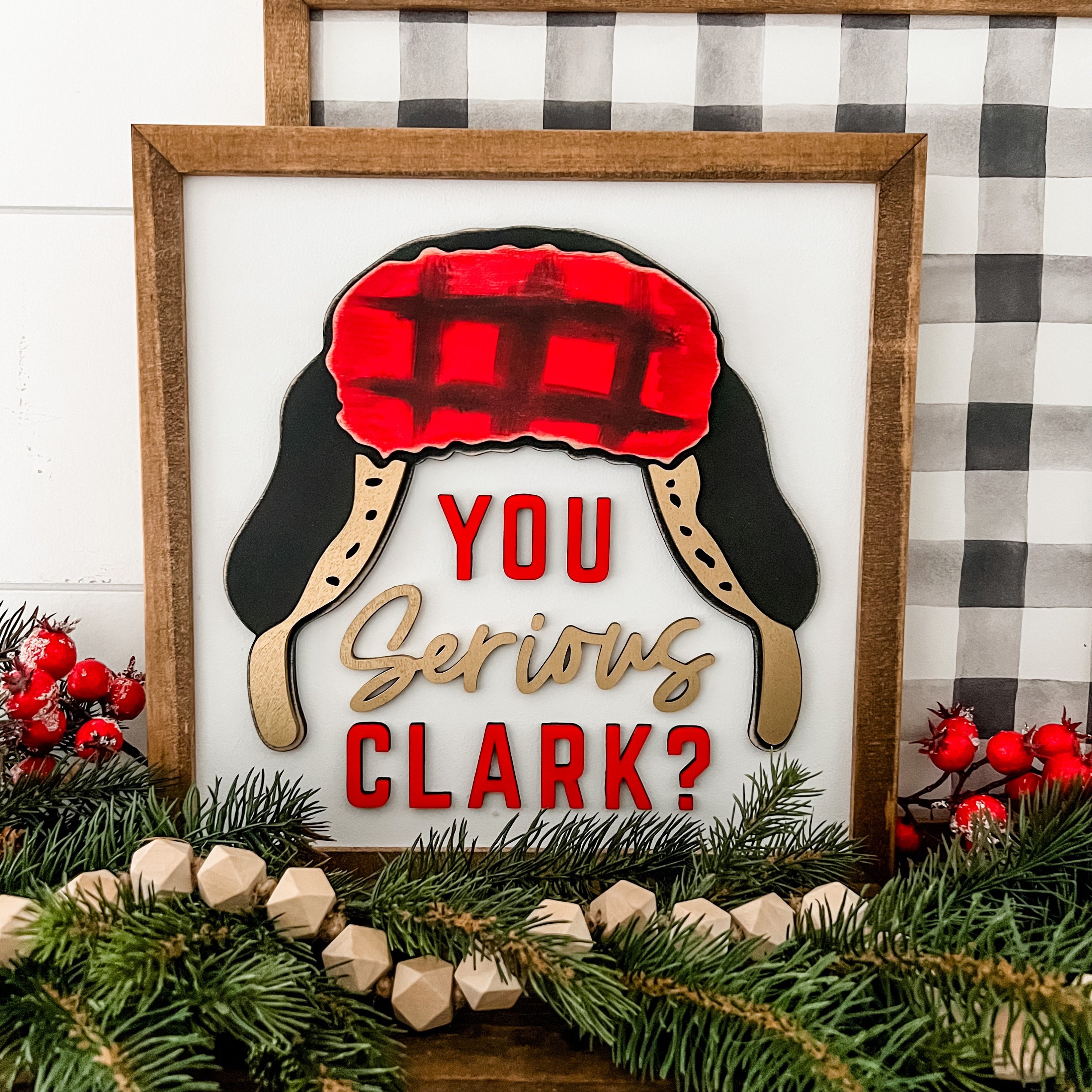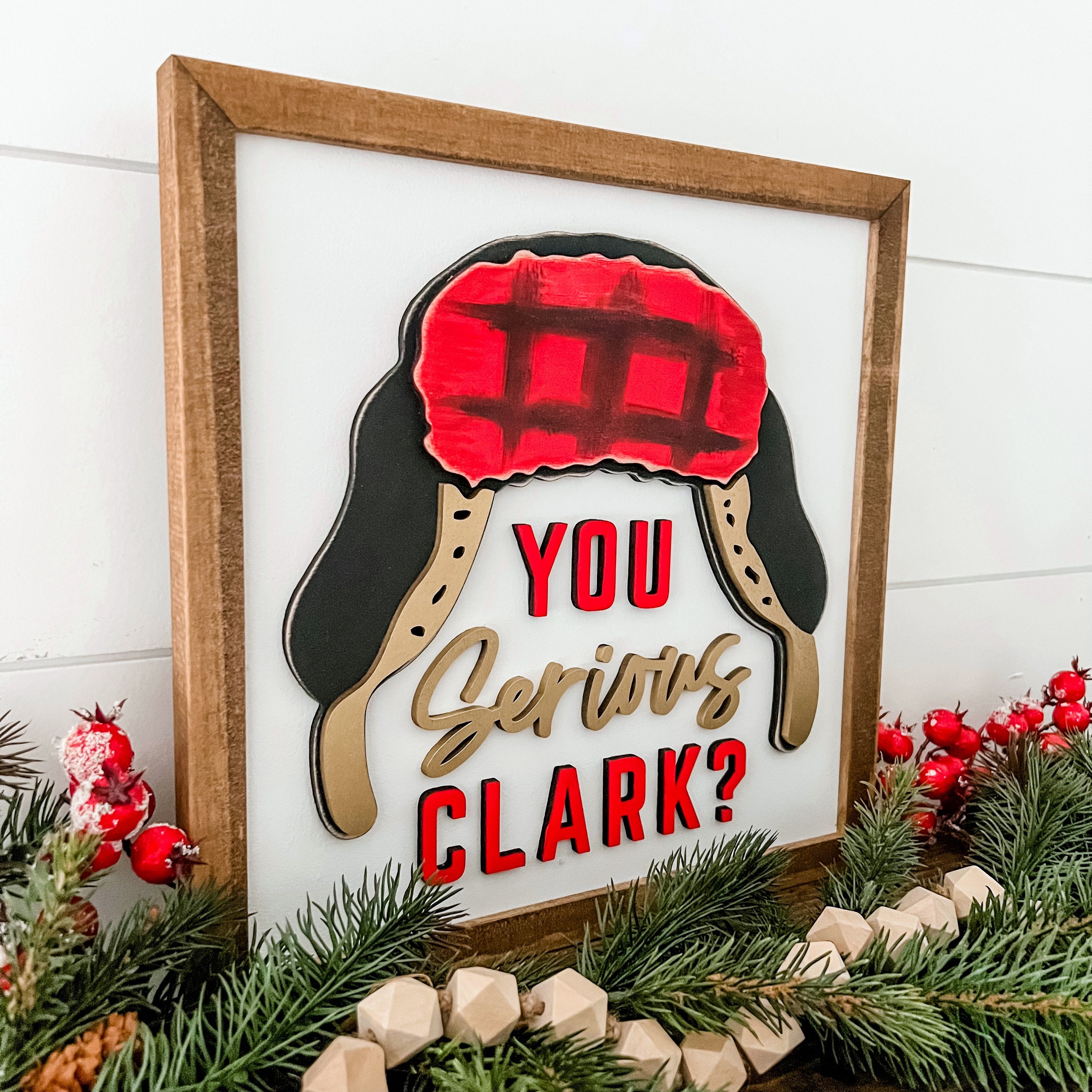 Funny Christmas sign with You Serious Clark wording and cousin Eddie stocking cap graphic. All items on this sign are laser cut, giving the sign an added unique dimension!