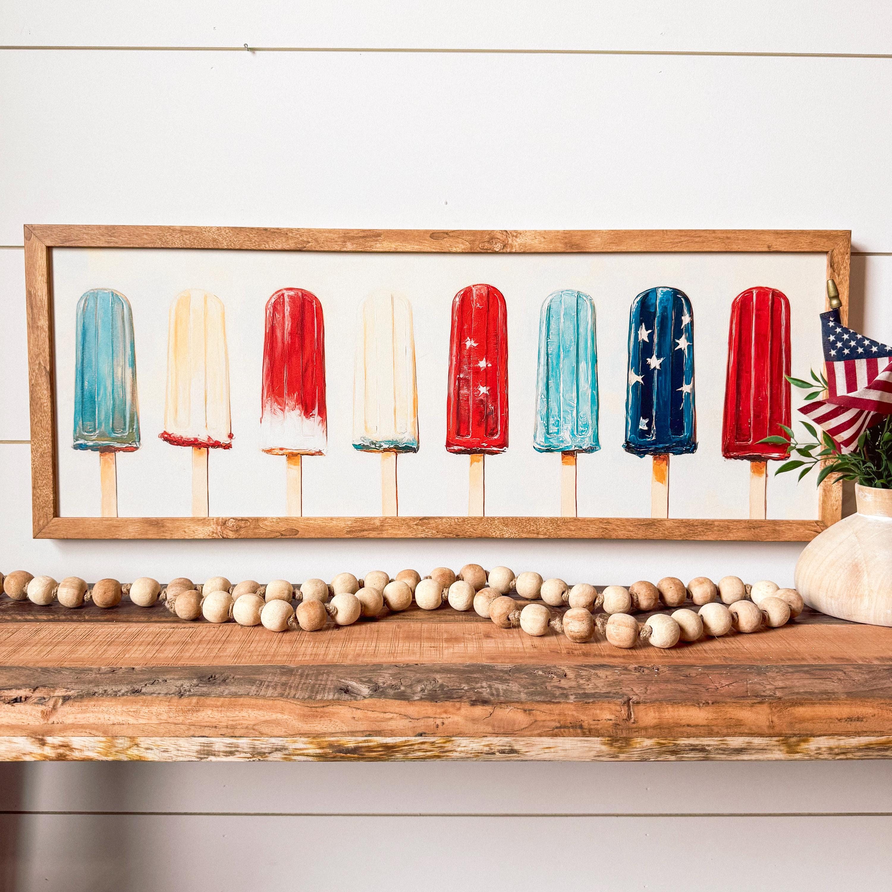 4th of July Popsicle Wood Sign, 4th of July Wall Art, Summer Wall Art, Patriotic Wall Art, Farmhouse Wood Sign, 4th of July Sign