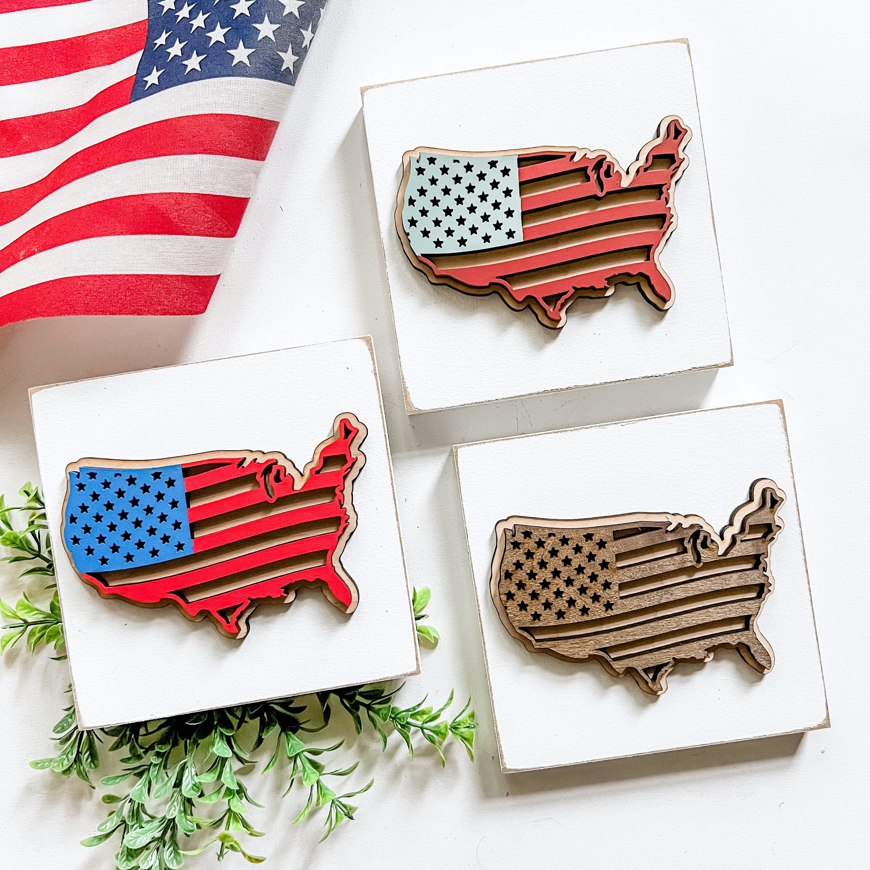 American Flag Tiered Tray Sign, 4th of July Sign, Mini Wood Tiered Tray Decor, Farmhouse Wood Sign, Tiered Tray Sign, Shelf Sitter Sign
